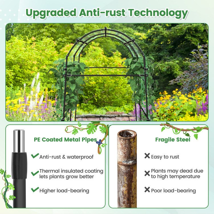 7.5 Feet Garden Arch Trellis with PE Coated Metal Structure