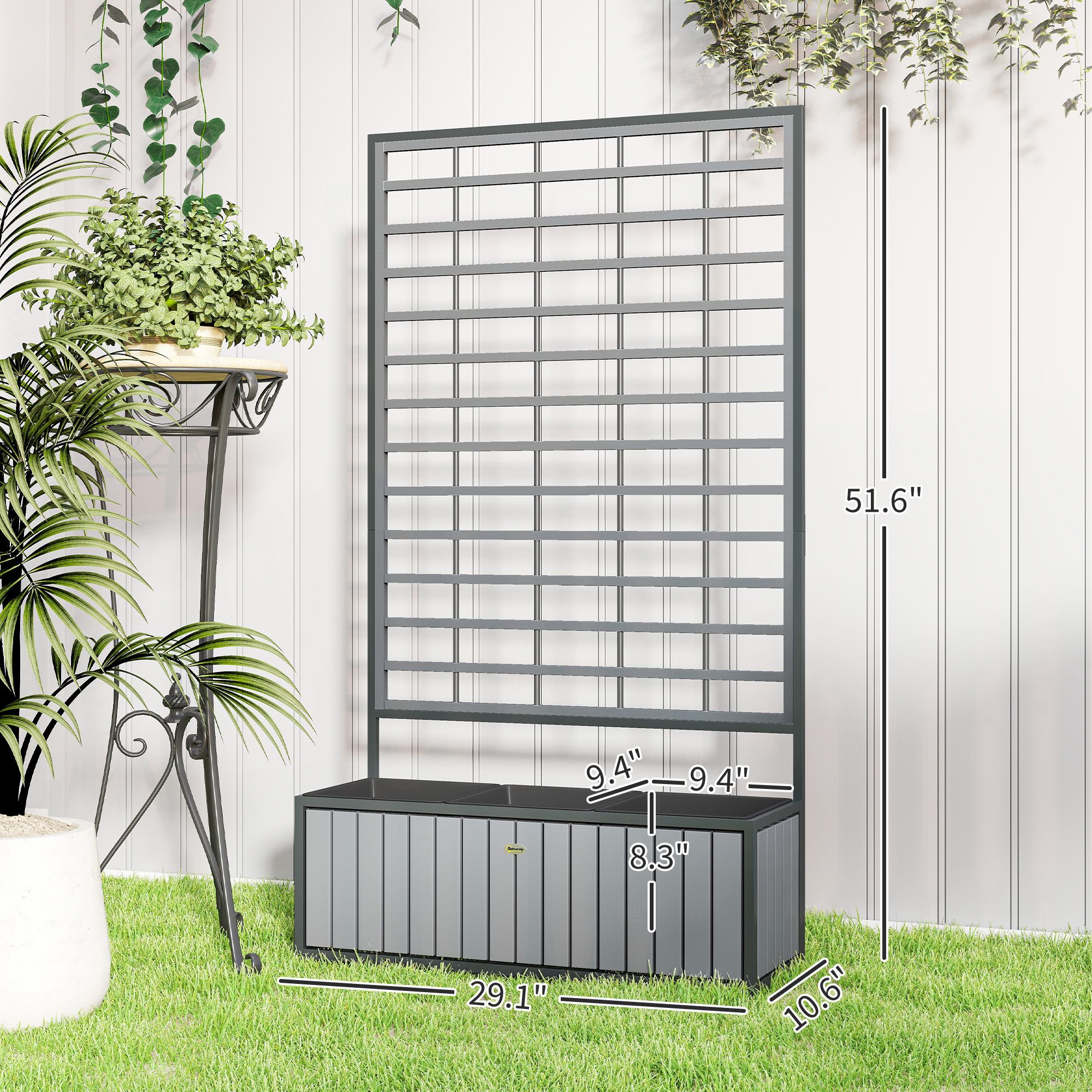 Outsunny Wooden Raised Garden Bed with Trellis, Removable Pots, for Backyard, Patio, Balcony, 29" x 11" x 52", Gray